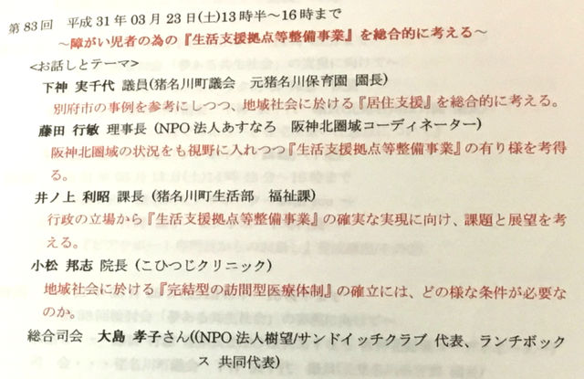 テーマ:障がい児者の為の「生活支援拠点等整備事業」を総合的に考える